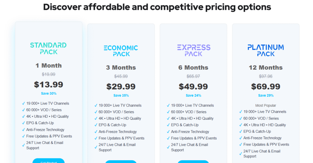 - King IPTV – $12/month, 25,000+ channels, international coverage.