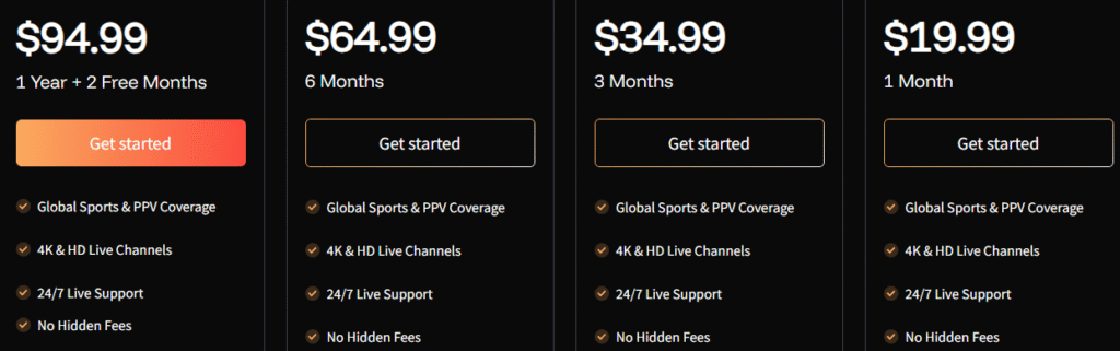 | Catch-up / EPG + no hidden fees | Pricing is higher compared to budget IPTV providers |